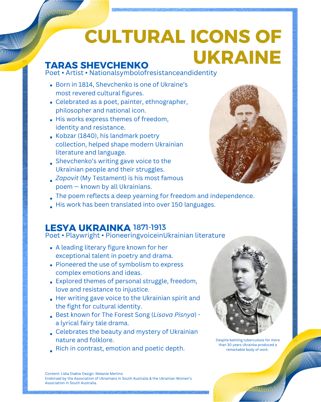 A small but dedicated team based in South Australia and working with Association of Ukrainians in SA and Ukrainian Women’s Association in South Australia have produced 4 new infographics focusing on Ukrainian food, cultural icons, dance & more!