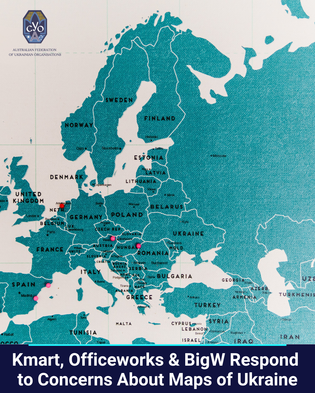 Following reports that world maps wrongly marking Crimea as “disputed” territory and misspelling Kyiv were still available, the Australian Federation of Ukrainian Organisations (AFUO) followed up with retailers.