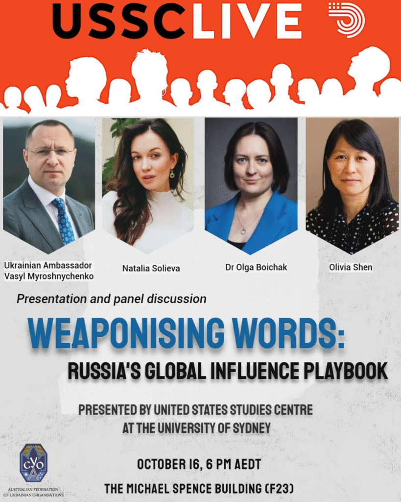 - Dr Olga Boichak, Director of the Sydney Social Sciences and Humanities Advanced Research Centre at the University of Sydney, and Director of the Foundation of Ukrainian Studies in Australia