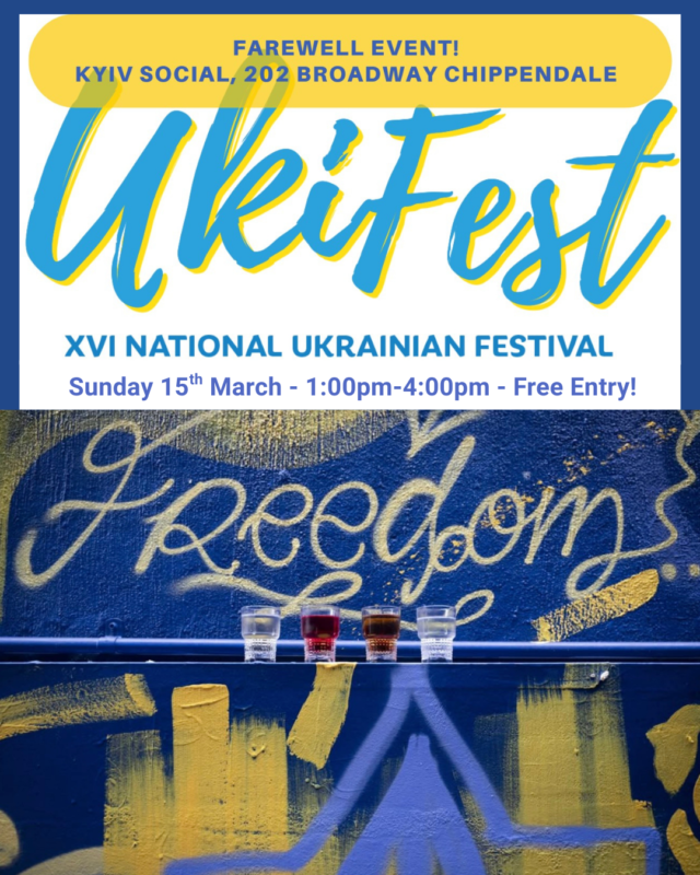 Saturday 14 March – UkiFest – Ukrainian Festival Sydney 2026, Tumbalong Park, Darling Harbour, 11am-10pm