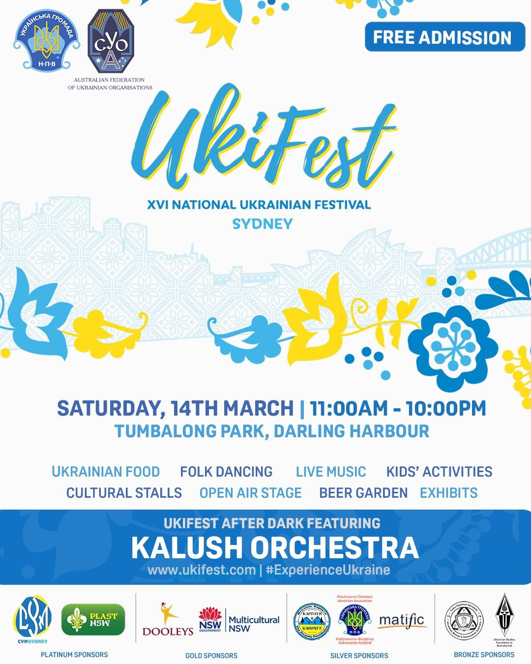 UkiFest Sydney – Ukrainian Festival | Saturday, 14 March 2026 – Tumbalong Park, Darling Harbour: www.ukifest.com