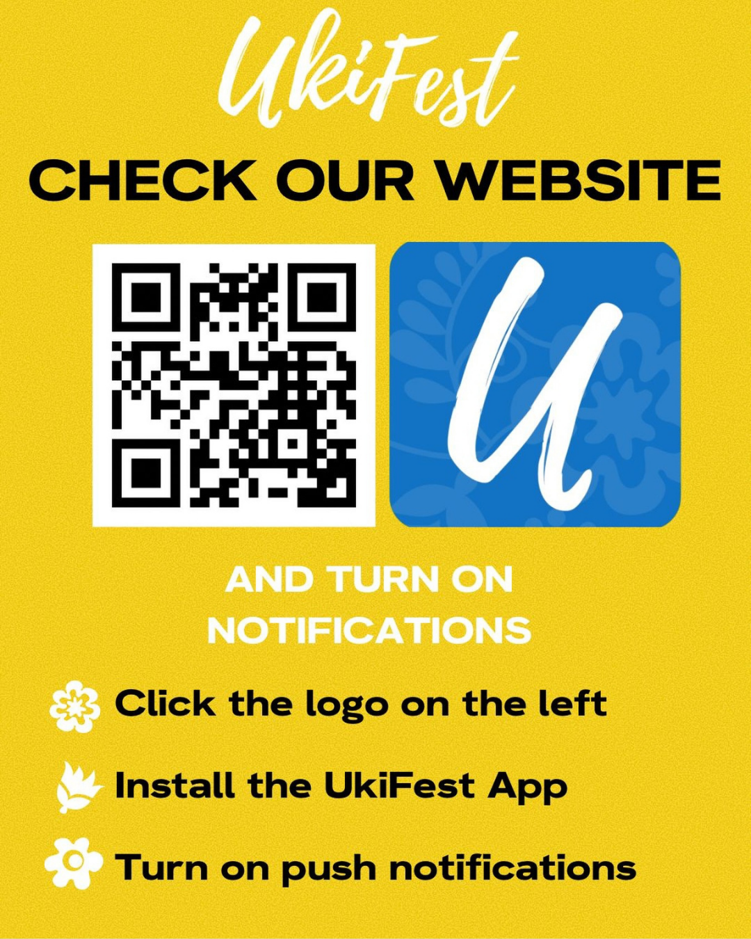 Download the UkiFest app to receive notifications about live updates, program reminders and announcements: www.facebook.com/share/p/18Ui17785T/